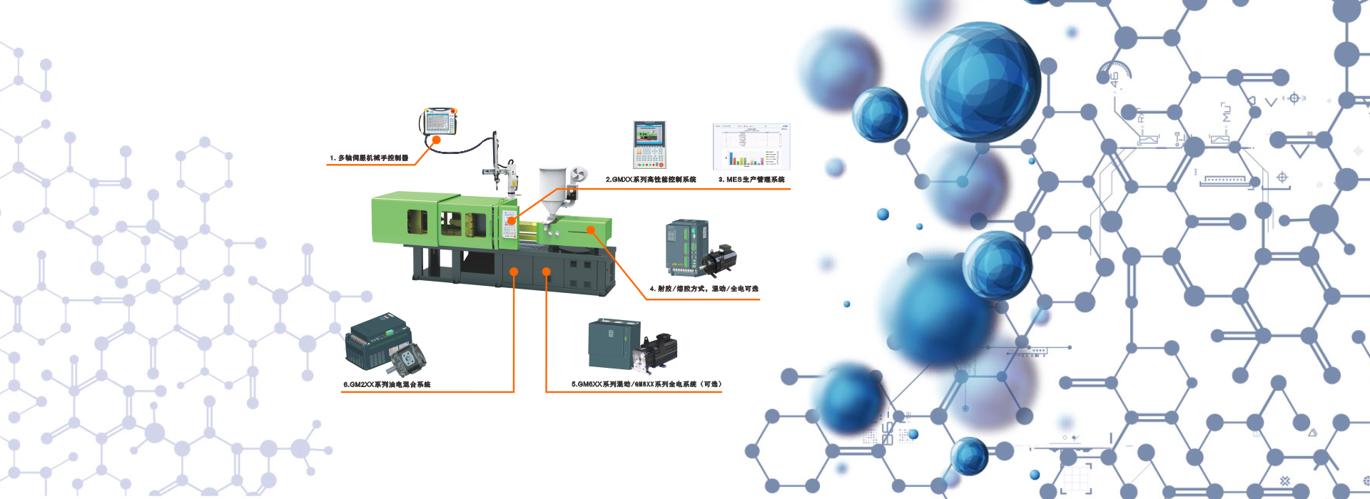 元智GM系列橡塑控制系統(tǒng) 元智GA系列機(jī)械手控制系統(tǒng) 元智GM系列全電動(dòng)橡塑系統(tǒng) MC系列橡塑控制系統(tǒng) MES注塑車(chē)間管理系統(tǒng)